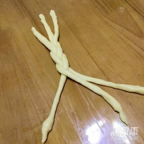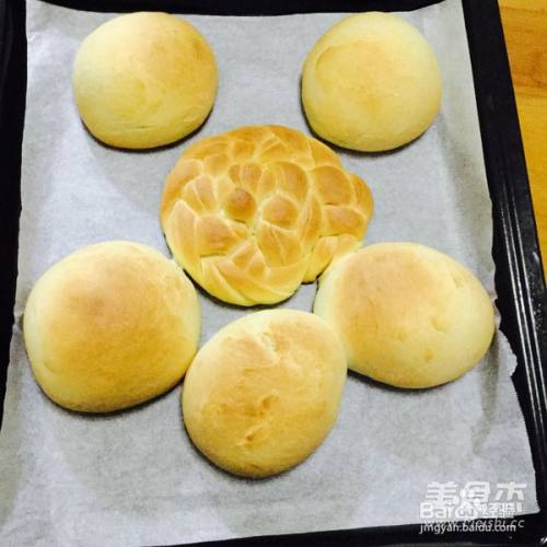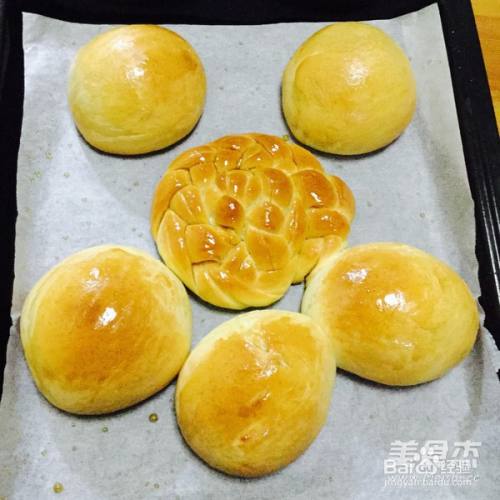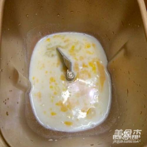 6面粉中间加入酵母,启动面包机的和面功能,带完成和面后加入黄油,重新启动面包机和面功能,重复和面程序一次