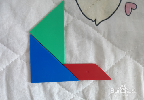 放上左右挨着的蓝色三角形、平行四边形,如图。