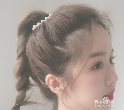 把马尾编成麻花辫,就又是另一种感觉了,非常韩系少女的风格~再别一个发夹就可以出去逛街、约会啦。