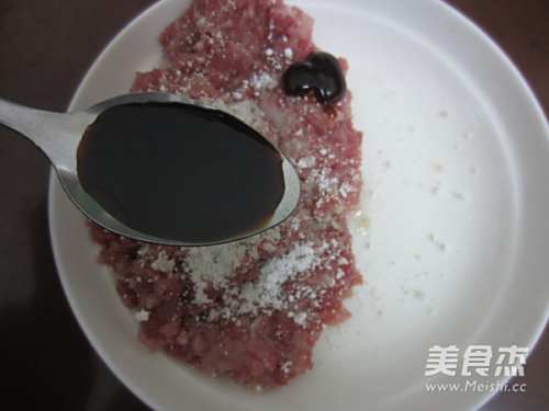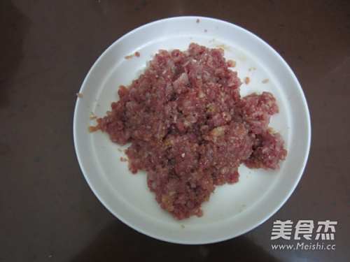 猪肉先净剁碎,用生抽、蚝油、盐、花生油、料酒、薯粉调味