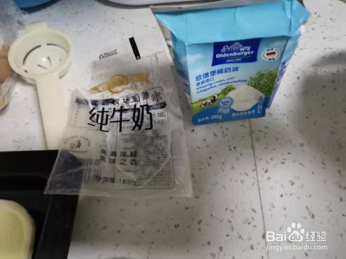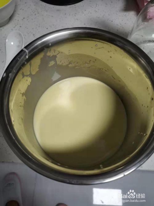 2.将纯牛奶、淡奶油、糖放在一个碗里轻轻搅拌。