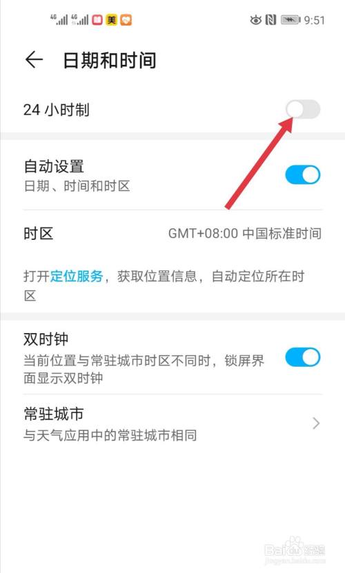 第四步:将滑块往右拖动,手机时间即可设置成24小时制