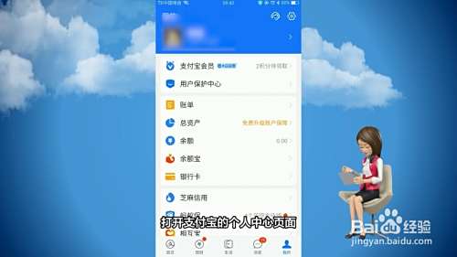 打开支付炼爬宝的个人中心页面,屈侮择在劣喝里面往下滑动,找到银行卡选项。