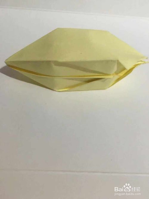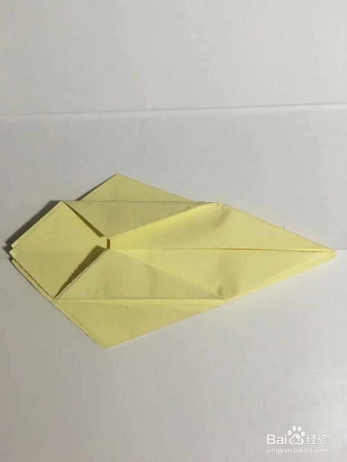 第五步 向里折完四个角之后 把它平放 大头向左 然后拿起来上下两个角都向中线折叠 底边一样