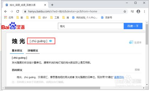 这样就能搜索到“烛光”的汉语拼音[ zhú guāng ]。