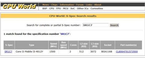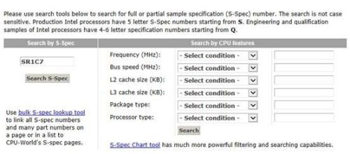 http://www.cpu-world.com/cgi-bin/SearchSSpec.pl