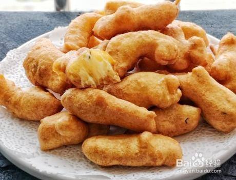 便可翻面继续炸,直到将其炸至蓬松并且金黄的时候便可出锅,按照这个方法将剩余的面糊也炸好,便可开始享用了。