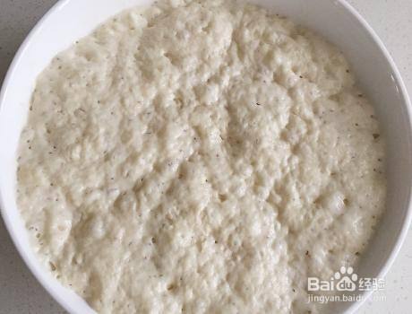 成为一个稀稠适中的面糊,静置半个小时的时间,看到表面有气泡出现的时候就说明发酵成功了,这个时候根据个人的口味加上点食盐调味