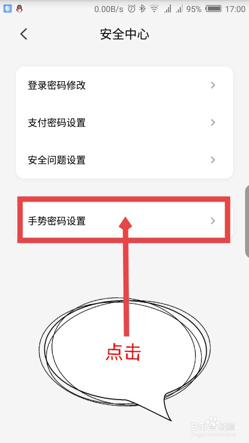 在安全中心的最下面的一个选项,是手势密码的设置,点击设置手势密码。如图所示