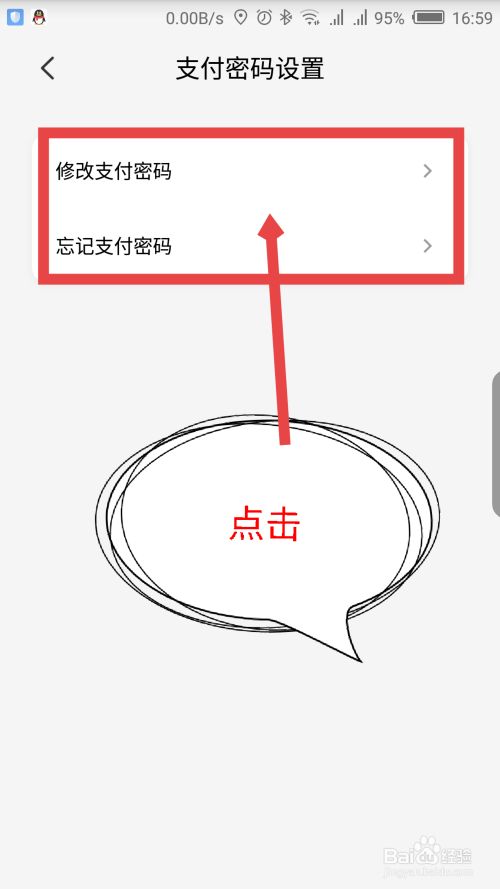 在打开的支付密码设置界面,如果忘记密码,点击下面一个修改,如果还记得原密码,点击上面的修改。如图所示
