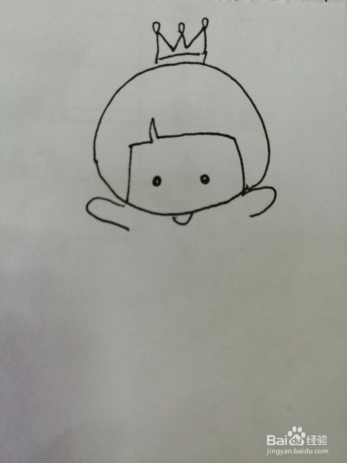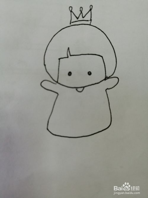 第四步,接着在萌萌小女孩的头部下面画出两只手臂,双手张开。
