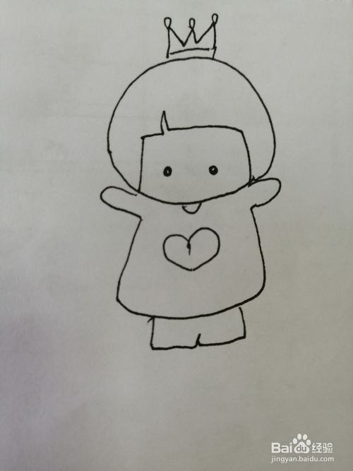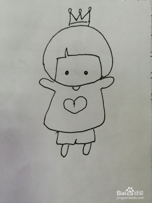 第五步,接着继续画出可爱的萌萌小女孩的衣服,衣服里面画出一个爱心。