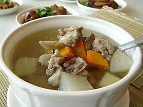 制法:先用水浸泡怀山药,扁豆、薏米用锅炒至微黄,猪排骨洗净血污并斩件,芡实、北、白术用清水洗净,然后将全部用料放进汤煲内,用中火煲1个半小时,调味即可。