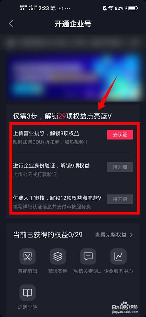 依次完成红色方框中的三步认证即可点亮蓝V。