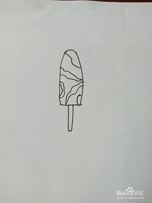 首先画出雪糕的外形轮廓,近似于一个长椭圆。