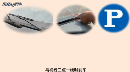 1雨刷定点停车法:雨刷定点停车法就是雨刮凸起点与定点停车标志杆与视线三点一线时刹车。