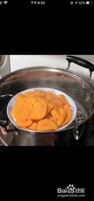 地瓜削皮,洗干净切片,放入锅里蒸熟。