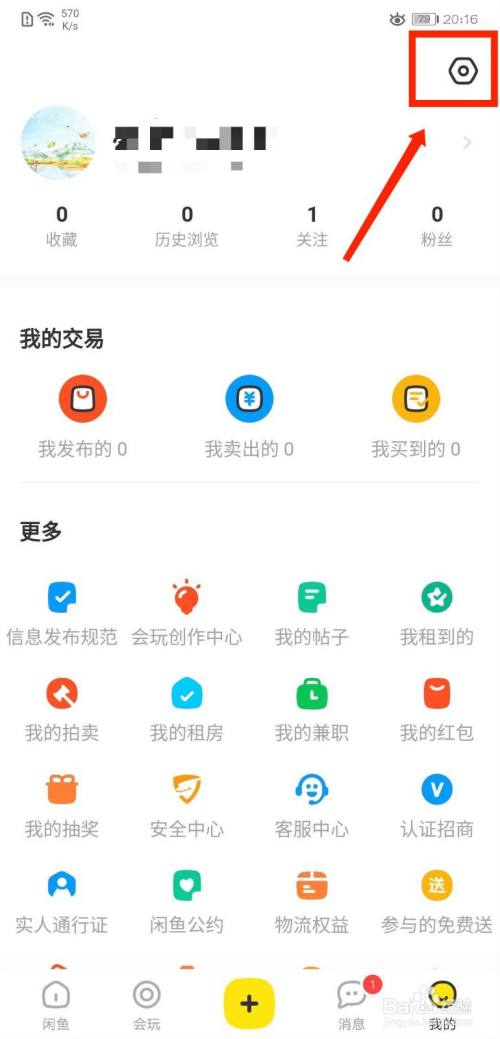 然后在闲鱼个人中心界面点击右上方设置图标。