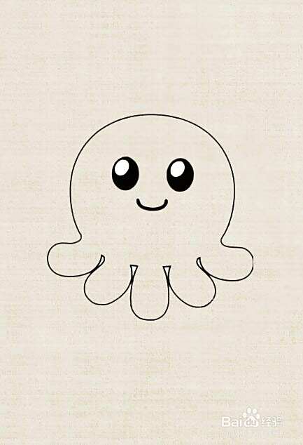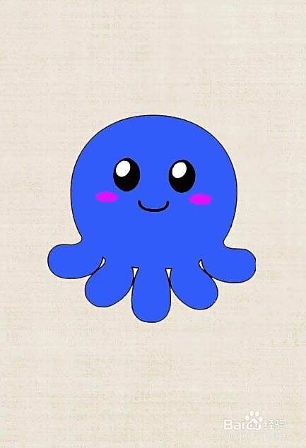 第四步,画出弯曲的触手,这样一只可爱小章鱼就画成了。