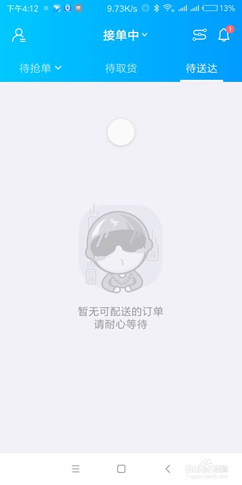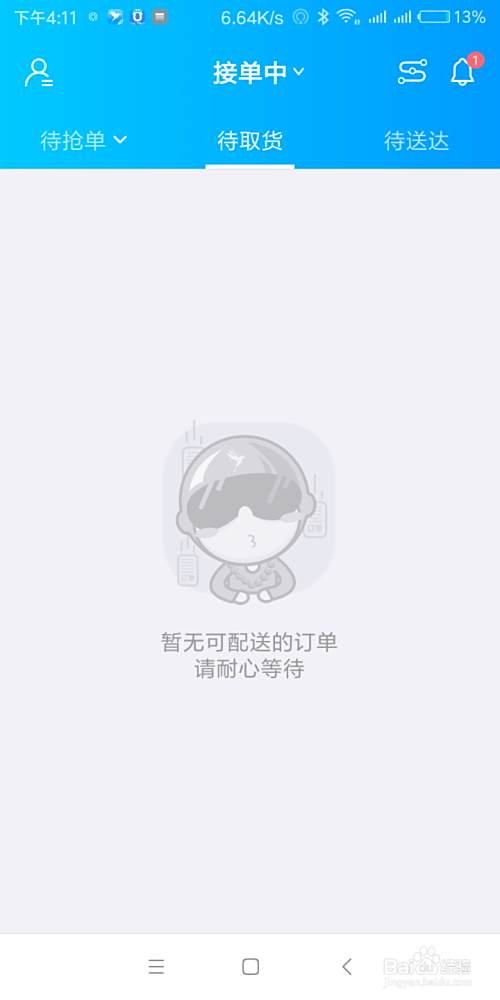 在这里可以看到已经抢到的单子,想要去取货可以在这里查看地址电话的信息。当你取货后,商家会给你一个取货码,用于输入你的手机里证明取货。
