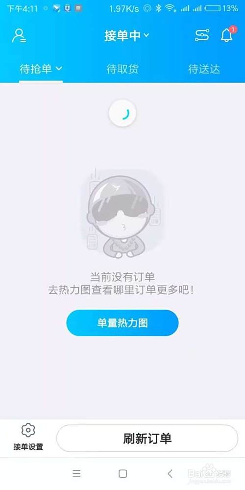 在这里接单,也可以查看到热力地图。热力地图就是根据单子胡多少变化颜色的。蜂鸟也有帮送订单,但是目前不多。