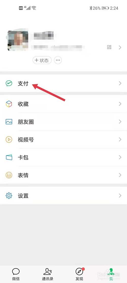 打开微信,点击进入“我”的页面,找到“支付”按钮,点击并进入“支付”页面