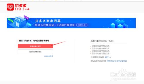 首先进入的是登陆页面,可以点击注册按钮,进入注册页面,然后按照指引,一步一步的填写信息。最后授权一下拼多多的店铺就可以了。