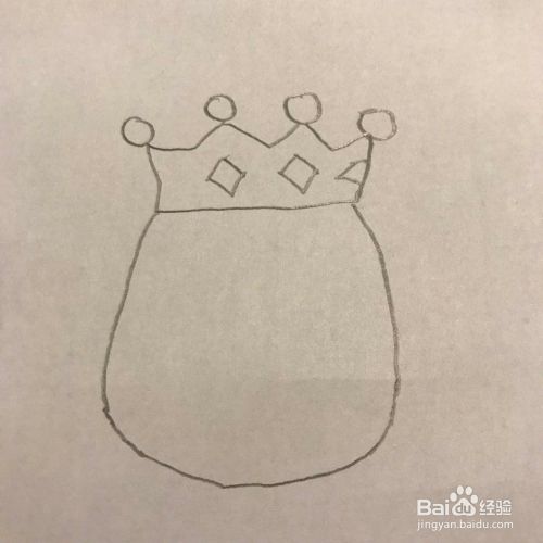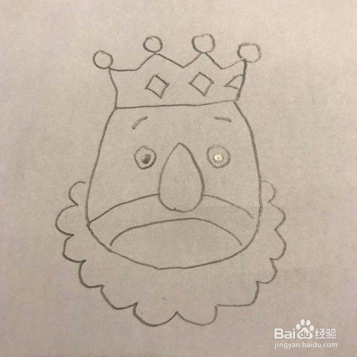 在王冠的下方画上国王圆圆的脸庞,见下图