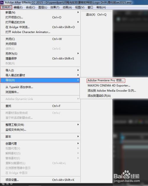 先打开Adobe After Effects编辑好视频,依次点击左上角的文件>导出>Adobe Premiere项目