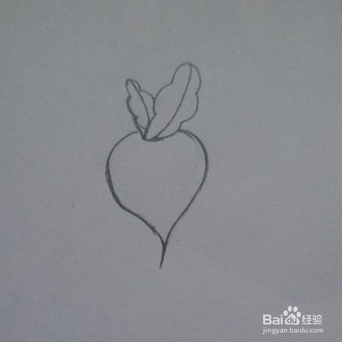 如图,首先画出红萝卜的一片叶子,边缘要有一点弧度。