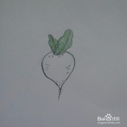 如图,用绿色彩铅笔把萝卜的叶子涂上颜色。