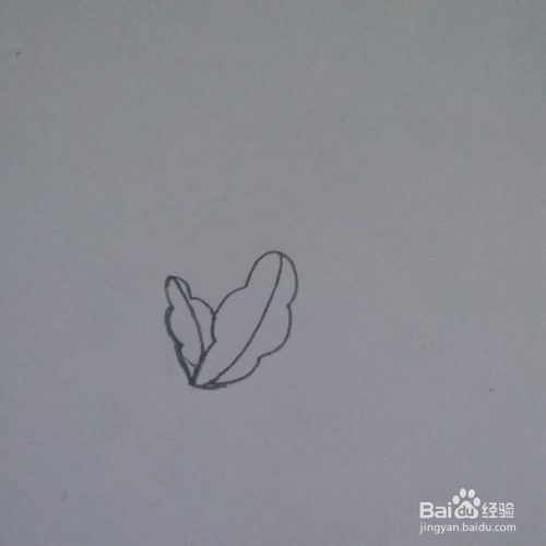 如图,在第一片叶子的左侧画出第二片叶子,比第一片要小一点哦。