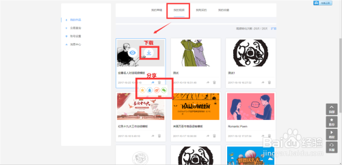 【分享&下载 】转换完毕后,进入“我的作品”查看视频,可下载到本地,或者直接分享到QQ空间、QQ、微博或者微信。