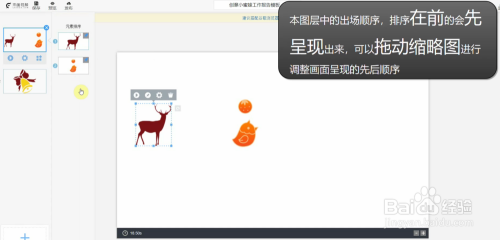 【调整元素排序】元素展示的顺序是按照左栏中画卡的排序展示的,可以通过拉拽画卡来改变画卡的顺序。