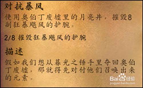 对抗暴风是黑海岸的哨兵塞拉伊给的任务,任务要求摧毁8个狂暴飓风的护腕。