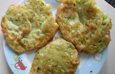 丝瓜鸡蛋饼 丝瓜一根去皮洗净,切成小细丝状,放入容器中加入两个鸡蛋打扫,搅拌均匀,加入适量面粉,少许水,搅拌成粘稠面糊,稍微稠点,加入盐鸡精,生抽老抽,十三香等调味,倒入电饼铛中煎至两面金黄即可出锅。