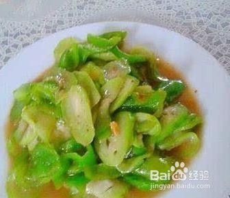 凉拌丝瓜 这种做法需要菱形的丝瓜。丝瓜洗净,切薄片,放入一个碗中加少许盐,鸡精,耗油,香油,醋等调味腌制20分钟即可。