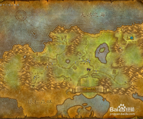 沿着幽暗城那条路往左下角走,就是银松森林。注意,不要走到丧钟镇去了。