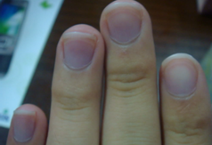指甲变紫:在寒冷天气的时候观察手指,会发现甲床会变得青紫,这是由于微循环不好造成的缺氧。如果在温度正常情况下,你的手指仍然变紫,那可能预示着肺部疾病或心脏病正在困扰着你,因为这两个器官功能障碍,会造成机体的缺氧,最先表现在指甲上。