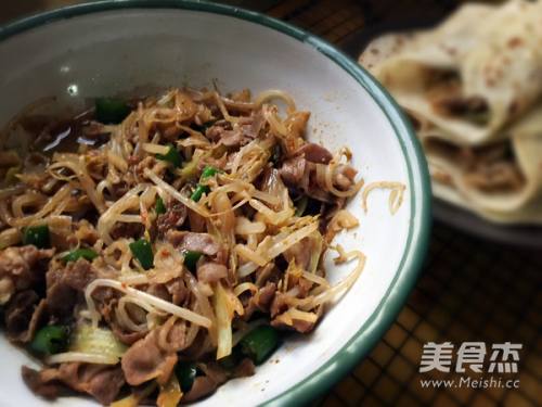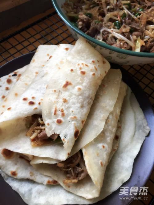 19然后放入一些孜然,关火,炒均匀即可出锅。把菜卷到饼子里,就可以开吃啦。END