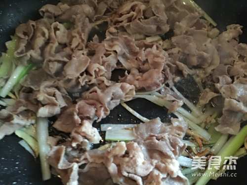 14下羊肉爆炒,大火哦。淋入一些料酒。