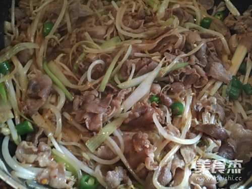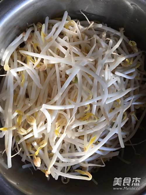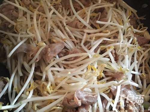18翻炒均匀,放一些盐,豆芽开始变软。