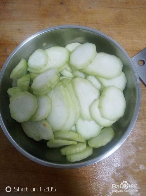 准备一根丝瓜,将丝瓜去皮,切成圆片,放入锅中