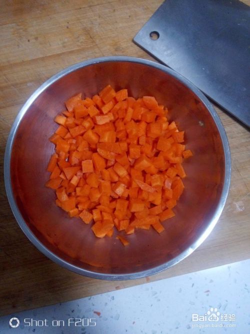 同时准备红萝卜半根,将红萝卜洗干净切成小萝卜丁