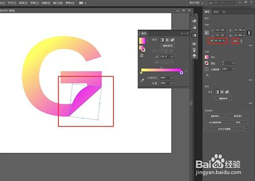 选择分离出来的图形,在右侧属性栏先点击"水平镜像",再旋转角度,同时调整渐变色的角度,如图所示:
