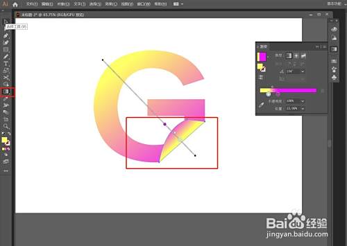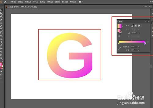 点击左侧工具栏"T"文字工具,输入文字”G“,文字字体选粗一点的,这样容易出效果,如图所示: