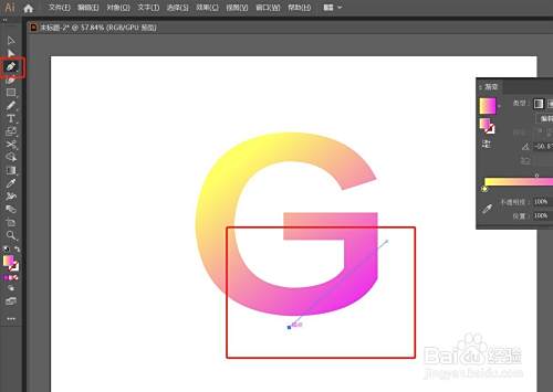 点击左侧工具栏"钢笔"工具,在文字上画一条直线,如图所示: