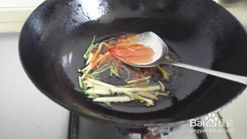 热油锅,放入葱姜炒出香味,再加入番茄酱炒出香味