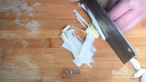 适量白糖,适量水搅拌均匀,大葱切丝,生姜切丝,大蒜切片,锅烧热倒油。