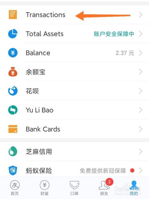 2.进入【我的】界面,点击【Transactions(账单)】。